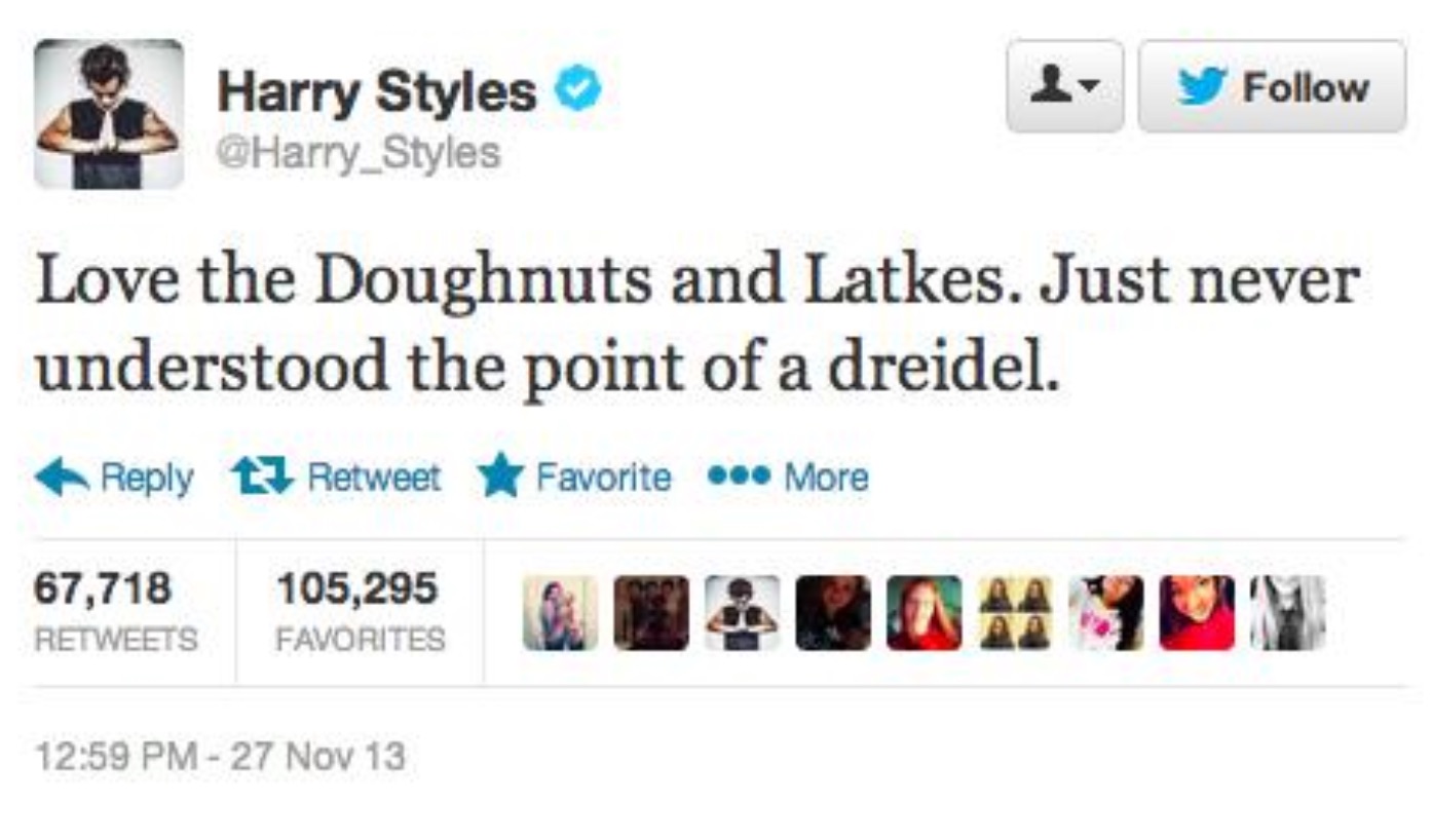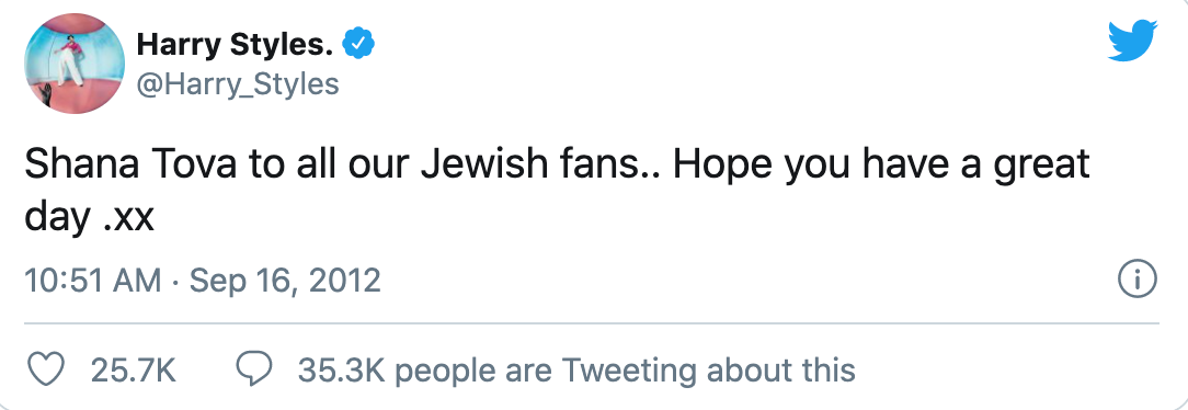 Harry’s Rosh Hashanah tweets are my absolute favorite, and his 2012 well wishes are sweet and simple.