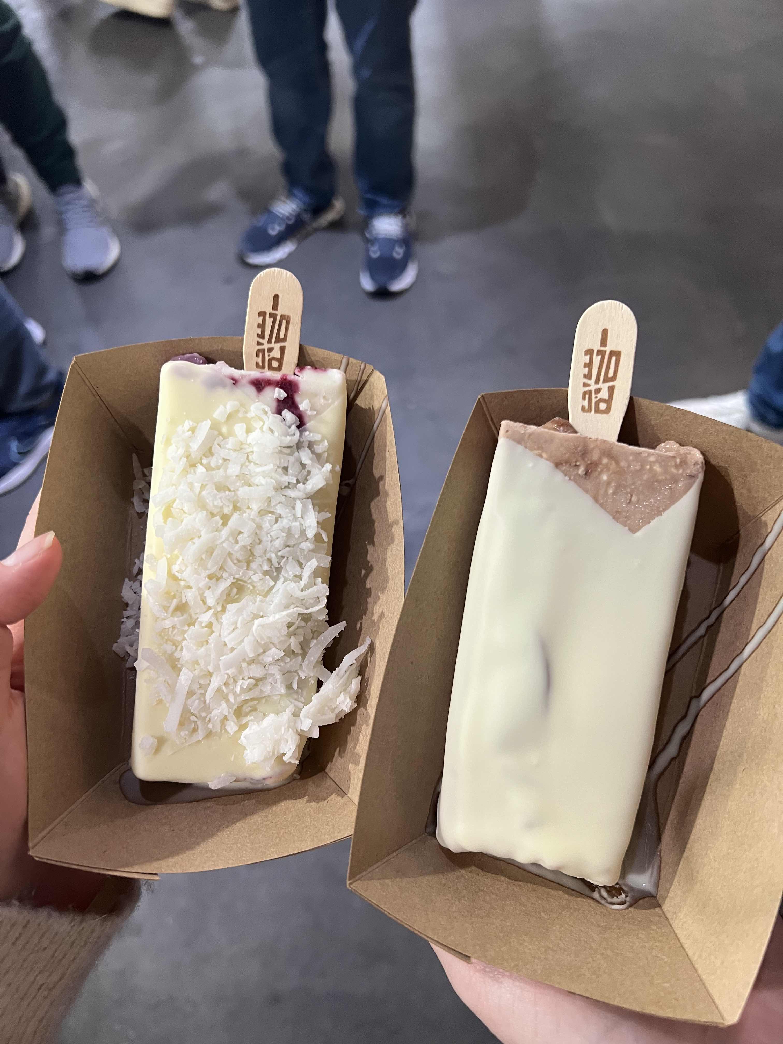 For dessert and our last stop, we went to Popiclés and had gourmet popsicles. I got the white chocolate berry base, white chocolate dipping, and coconut topping. My sister got the ferrero rocher base with white chocolate dipping.